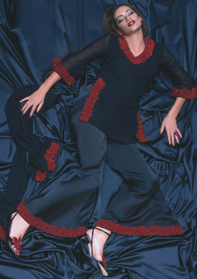 Pure Georgette with Velvet Flockwork and Satin Pants