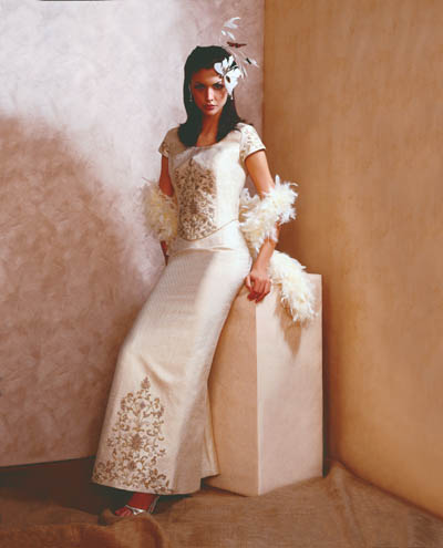 Ivory Corset Reception OutfitStyle Number : IC001Ivory silk brocade corset with resham embroidery and swarovski crystals.