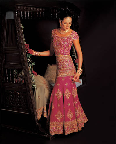 Fuschia lenghaStyle Number : ML08Fuschia resham fishtail bridal lehenga with encrusted belt